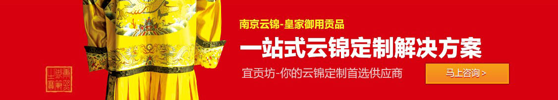 南京宜貢坊云錦文化科技有限公司成立于二OO一年,場地面積10000㎡,致力于做中國知名的云錦,宜貢坊云錦文化科技有限公司座落于江寧開發(fā)區(qū)。做為江蘇云錦文化科技品牌之一,南京宜貢坊擁有雄厚的技術(shù)力量和實(shí)力,現(xiàn)有大型傳統(tǒng)花木樓織機(jī)幾十臺,織造師、研究設(shè)計(jì)人員數(shù)百人。公司擁有直屬北京、深圳、上海辦事處和近千家緊密經(jīng)銷商、合作商;產(chǎn)品在南京中央商場、新百、上海八百伴、上海友誼商場,泰州金鷹等全國多家大型商場均有專柜。